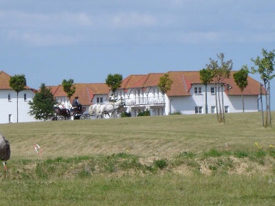 ... am Rande der Anlage befindet sich unsere Ferienwohnung in einem verklinkerten Haus - mit Blick auf weite Land- schaften und den großen Jasmund Bodden ...