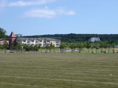 ... zwei Hotelflügel, in der Mitte hinten das repräsentative Guts-herrnhaus - und auch hier wieder "ganz viel Landschaft" ...